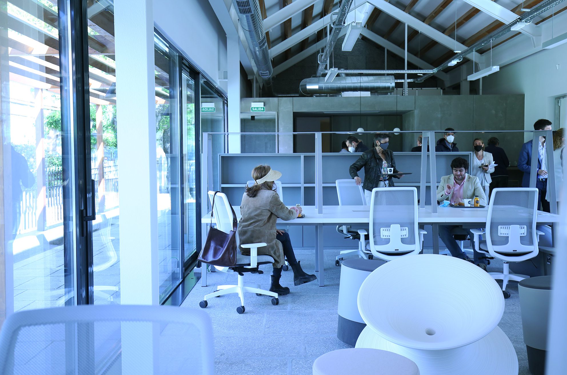 El pabellón tiene una sola planta de unos 220 metros cuadrados. Consta de dos salas con un total de 35 puestos de trabajo de tres tipos diferentes, ocho de ellos emprendedores becados. Tiene además una sala de reuniones para ocho personas, zona de office, dos cabinas con reducción acústica, 21 taquillas y dos grandes terrazas exteriores. Dispone también de conexión wifi para los usuarios y fotocopiadora, en la que escanear, copiar e imprimir desde el portátil. El recinto cuenta con climatización aerotérmica de frío y calor.