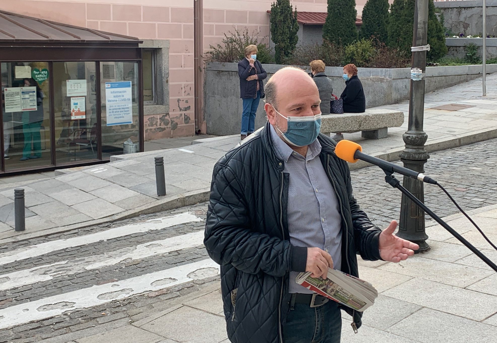 Los concejales de Podemos en San Lorenzo de El Escorial, Valdemorillo y Navalagamella ofrecieron el pasado viernes una rueda de prensa a las puertas del Centro de Salud San Carlos, en San Lorenzo, para denunciar “la falta de previsión de la Comunidad de Madrid en la campaña de vacunación por Covid-19 a los mayores de 80 años”.