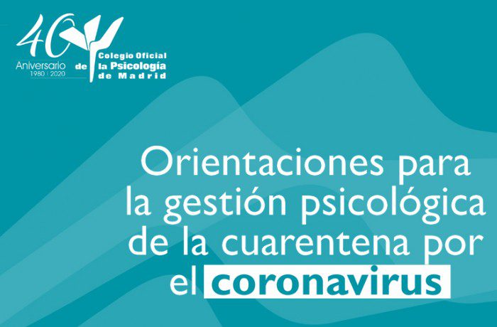 La Comunidad de Madrid ha difundido a todos los directores de los centros educativos un decálogo sobre Orientaciones para la gestión psicológica de la cuarentena por el coronavirus, que ha sido elaborado por el Colegio Oficial de la Psicología de Madrid. Estas orientaciones se han puesto a disposición -a través de la plataforma EducaMadrid- para consulta de directores, padres y alumnos en la siguiente dirección: