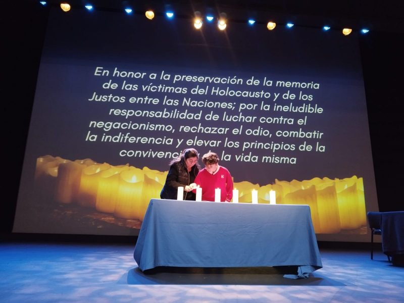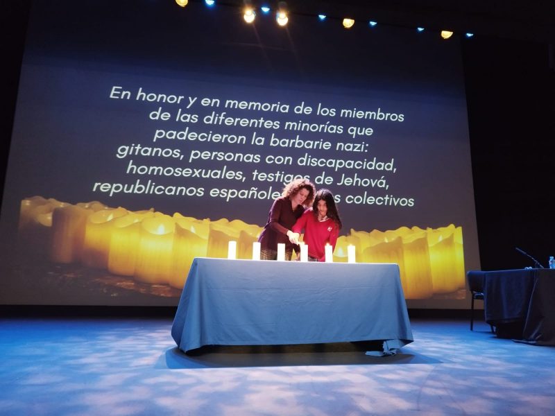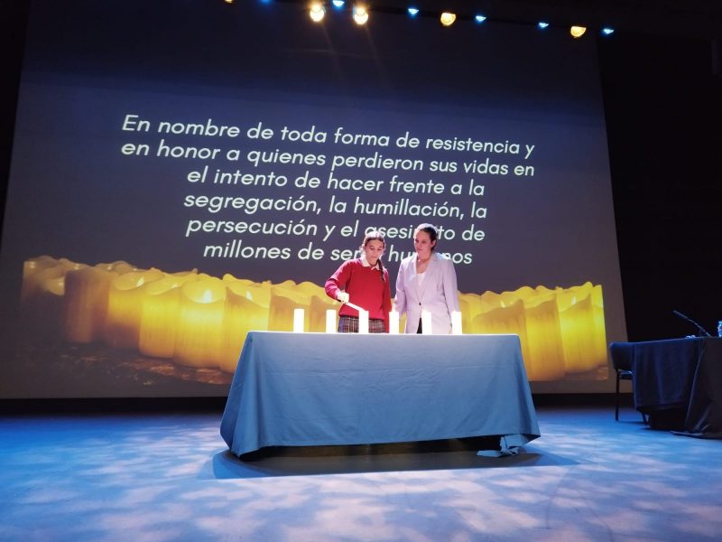 El Teatro Bulevar de la Casa de Cultura Paco de Lucía ha sido el escenario donde alumnos del colegio Peñalar y del San Ignacio de Loyola han sido testigos del encendido de seis velas (en el Holocausto fueron asesinados seis millones de judíos). La primera de ellas, en memoria de los millones de personas asesinadas; la segunda, de quienes asumieron el riesgo de informar de la verdad de los acontecimientos; la tercera, de las diferentes minorías que padecieron la barbarie nazi; la cuarta, en nombre de toda forma de resistencia; la quinta, para preservar la memoria de las víctimas, y la sexta, en honor a los supervivientes.