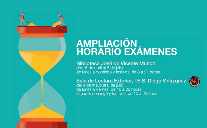 Como novedad, al servicio que venía prestando al respecto la biblioteca municipal José de Vicente Muñoz, se suma en esta ocasión la Sala de Lectura Exterior del IES Diego Velázquez. Los horarios de ambos espacios son los siguientes: