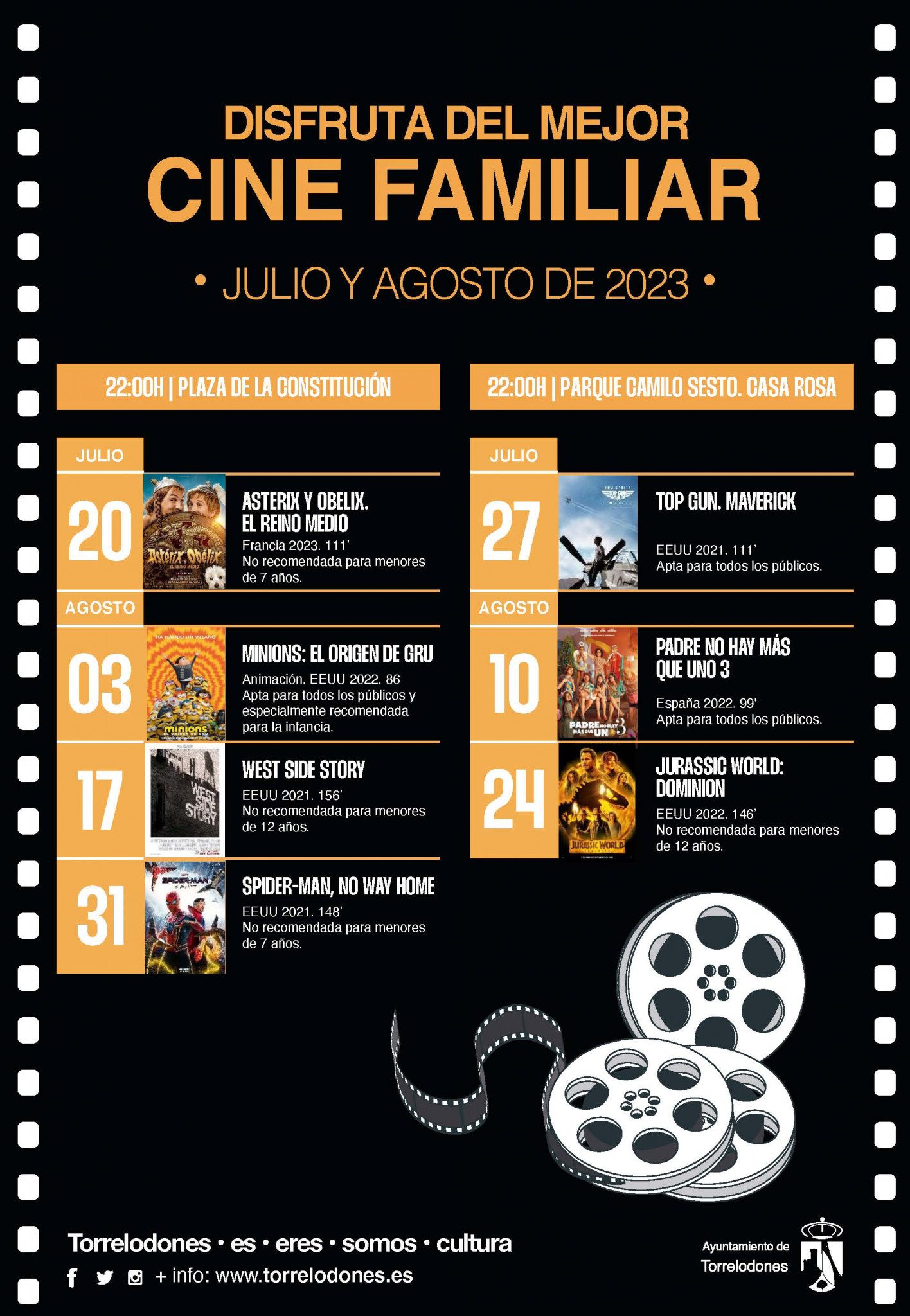 A lo largo de los meses de julio y agosto (jueves 20 y 27 de julio y 3, 10, 17 y 24 de agosto), los vecinos de Torrelodones tendrán la oportunidad de disfrutar durante sus calurosas noches de verano de sesiones cinematográficas dentro del ciclo Cine de Verano, ciclo con el que se ofrece una selección de películas para todos los públicos que se exhibirán tanto en el Pueblo (plaza de la Constitución) como en la Colonia (parque Camilo Sesto, junto a la Casa de Cultura). Las proyecciones tendrán lugar a las 22:00 h.