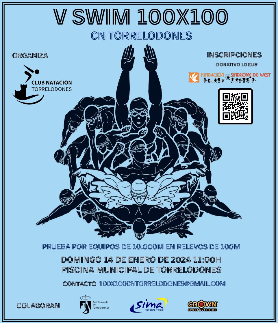 El Club de Natación de Torrelodones, en colaboración con la Concejalía de Deportes, organiza por quinto año el 100 x 100 solidario, una prueba clásica de natación de invierno en la que seis equipos con diez nadadores compiten para hacer 100 veces 100 metros en relevos. Cada nadador deberá nadar diez series de 100 metros; en total, cada equipo deberá nadar una distancia de 10.000 metros.