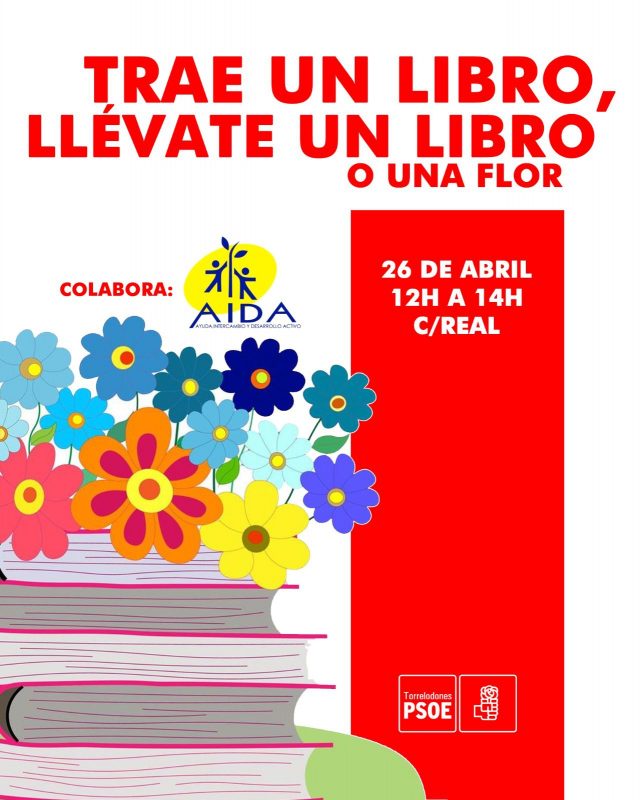 Cada 23 de abril se conmemora el Día del Libro, fecha vinculada a la muerte de figuras universales de la literatura como Miguel de Cervantes y William Shakespeare, una jornada que pone en valor la lectura, la cultura y la creación literaria. En el marco de estas celebraciones, el PSOE de Torrelodones impulsa una acción en la calle orientada a fomentar el intercambio de libros entre vecinos y vecinas. Las personas que se acerquen al puesto que el PSOE va a emplazar en la calle Real de Torrelodones, podrán intercambiar libros o, si lo prefieren, donarlos y recibir a cambio una flor como obsequio.