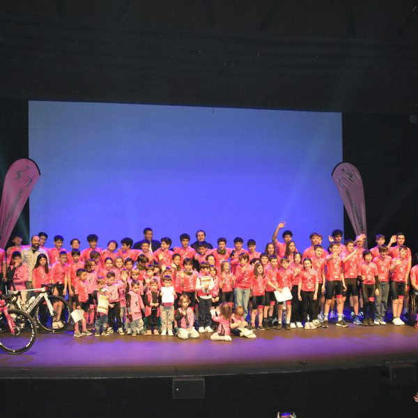 Y seguidamente fueron subiendo al escenario uno a uno el grupo de corredores, desde alevines hasta benjamines. Sin faltar los más pequeños, de 3 a 6 años: los minibikers, el grupo que entrena los viernes y el de los sábados porque en Entrenamiento Ciclismo caben todas las edades, solo hay que querer dar a los pedales.