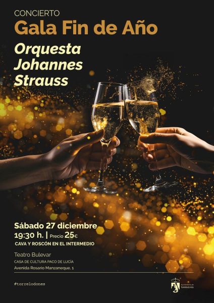 El sábado 27 de diciembre, a las 19:30 h en el Teatro Bulevar, tendrá lugar el tradicional Concierto de Gala Fin de Año. La Orquesta Johannes Strauss interpretará un programa festivo que incluirá valses, polcas y piezas clásicas del repertorio vienés. Durante el evento se ofrecerá cava y roscón a los asistentes.
