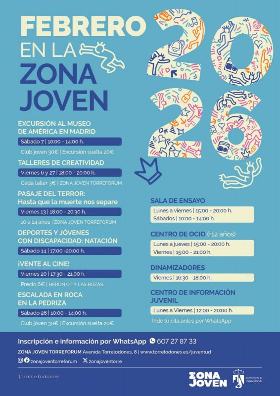 Para ampliar información sobre la programación de febrero en la Zona Joven, así como para la reserva de plazas en las actividades, las personas interesadas pueden dirigirse a la Zona Joven Torreforum (avenida de Torrelodones, 8) o ponerse en contacto con Juventud a través de teléfono 697 27 87 33.