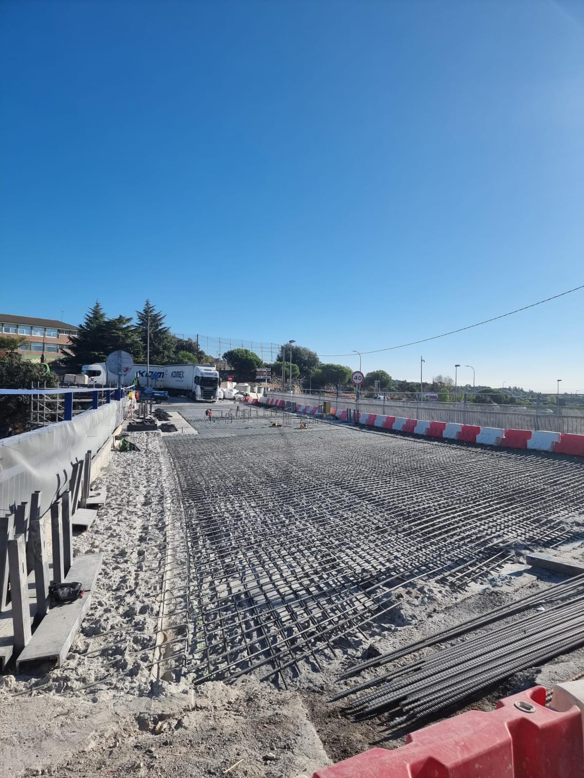 - Zapata y pilas en la mediana de la autovía A-6 para el nuevo apoyo central.