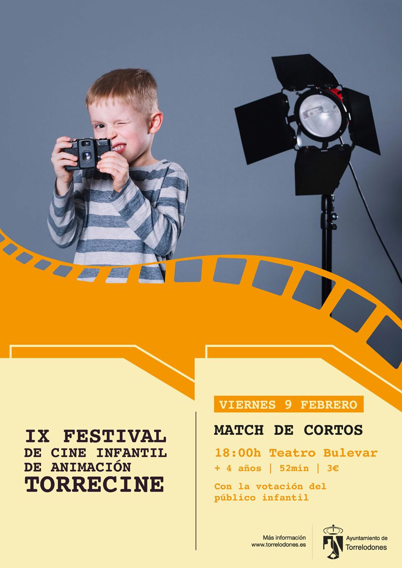 La primera de la cita será el viernes 9, a las 18:00h., con el Match de cortos. Torrecine presenta los cortometrajes que forman parte de la competición internacional. Los niños votarán el corto que más les guste y depositarán su voto en las urnas de la Casa de Cultura.