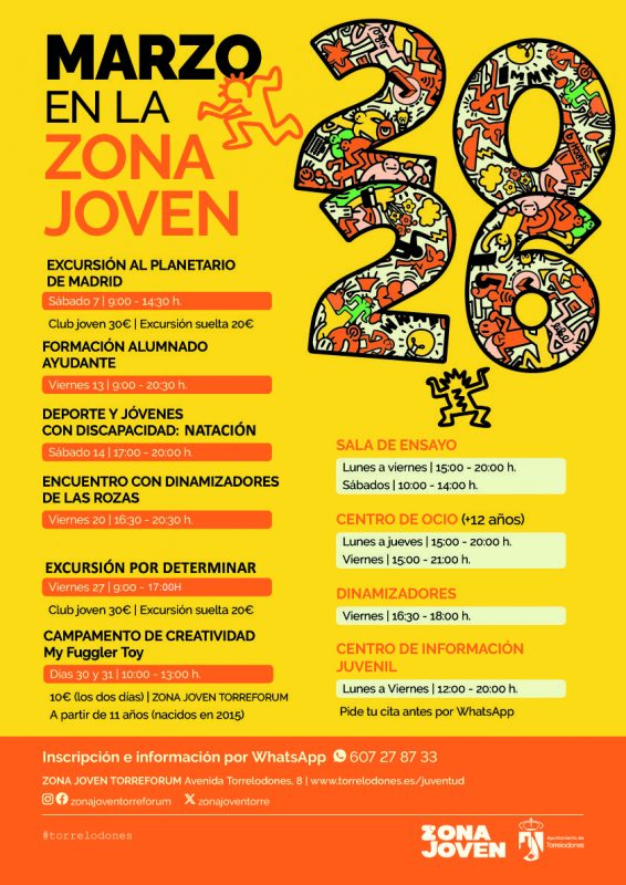 La Zona Joven Torreforum presenta su programación de marzo con una agenda variada dirigida a jóvenes del municipio, que combina talleres creativos, excursiones culturales y deportivas, formación y actividades de participación.
