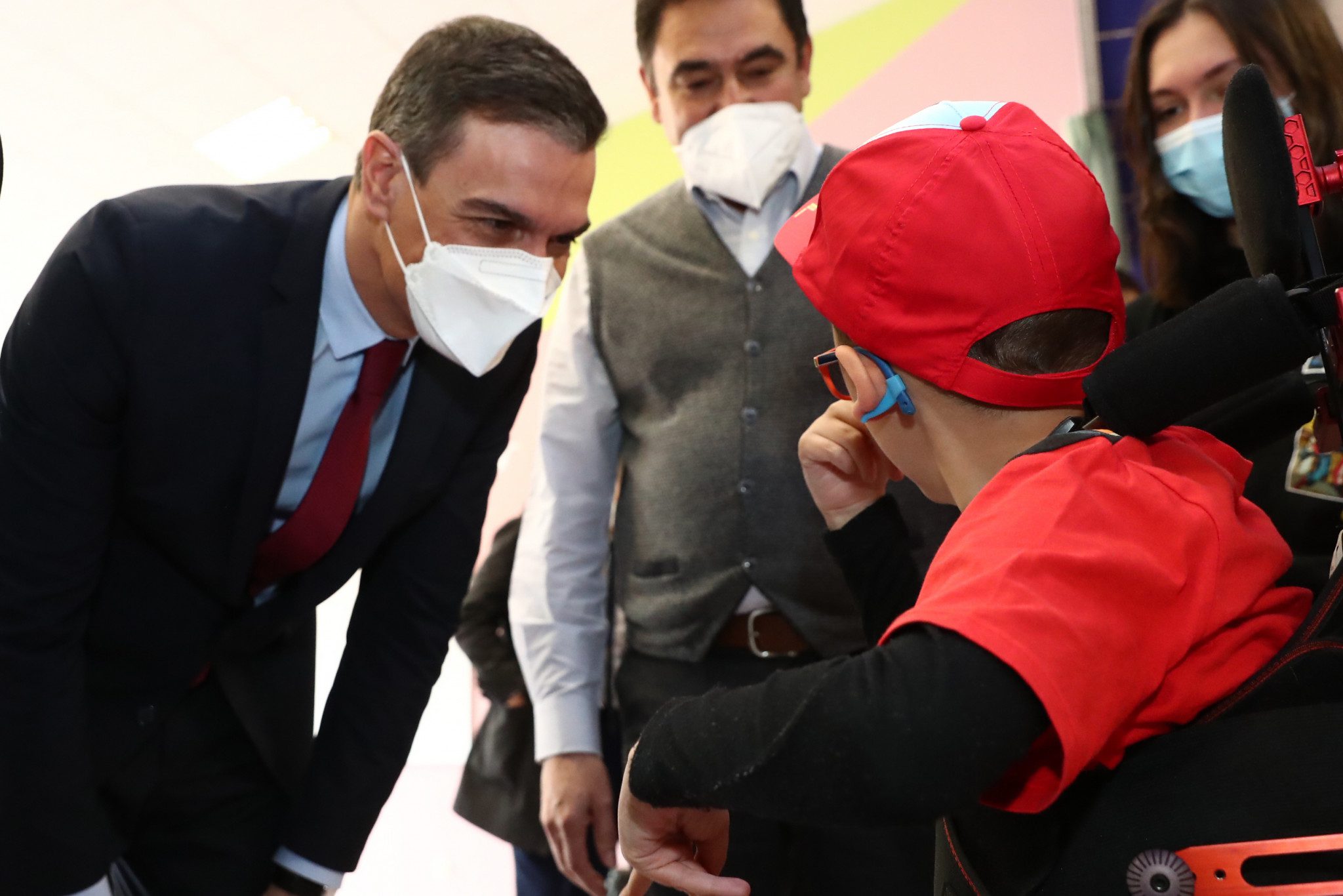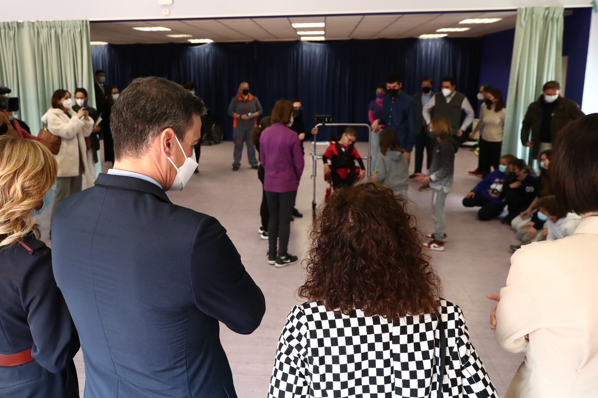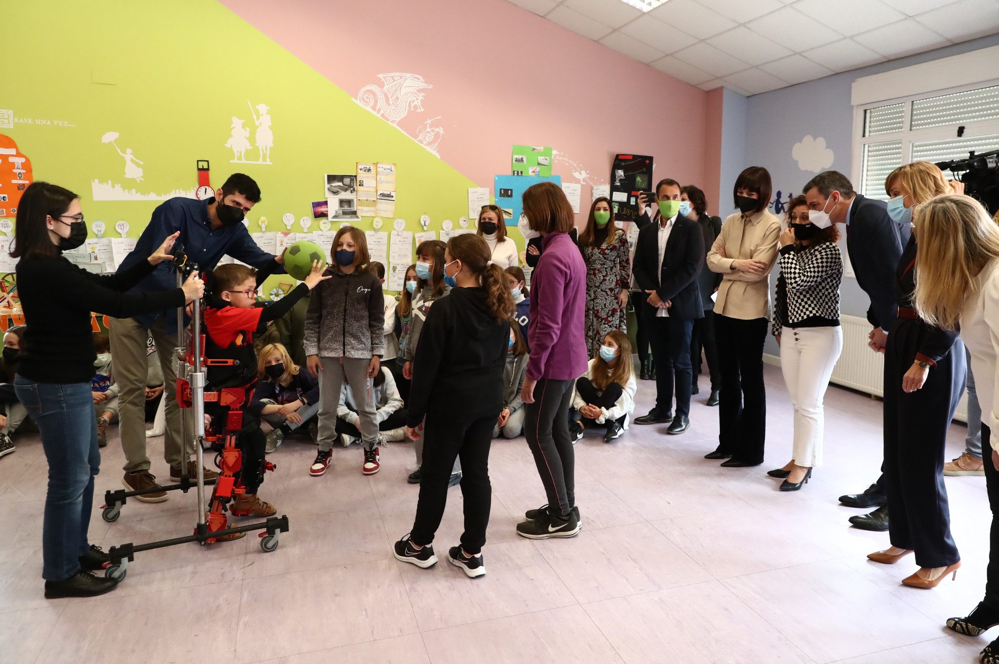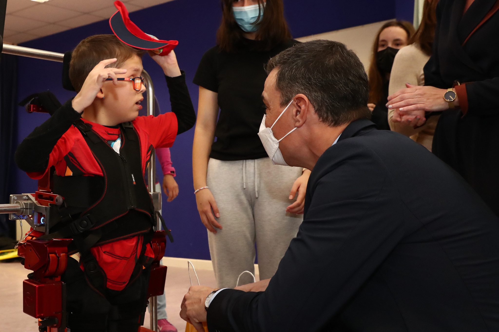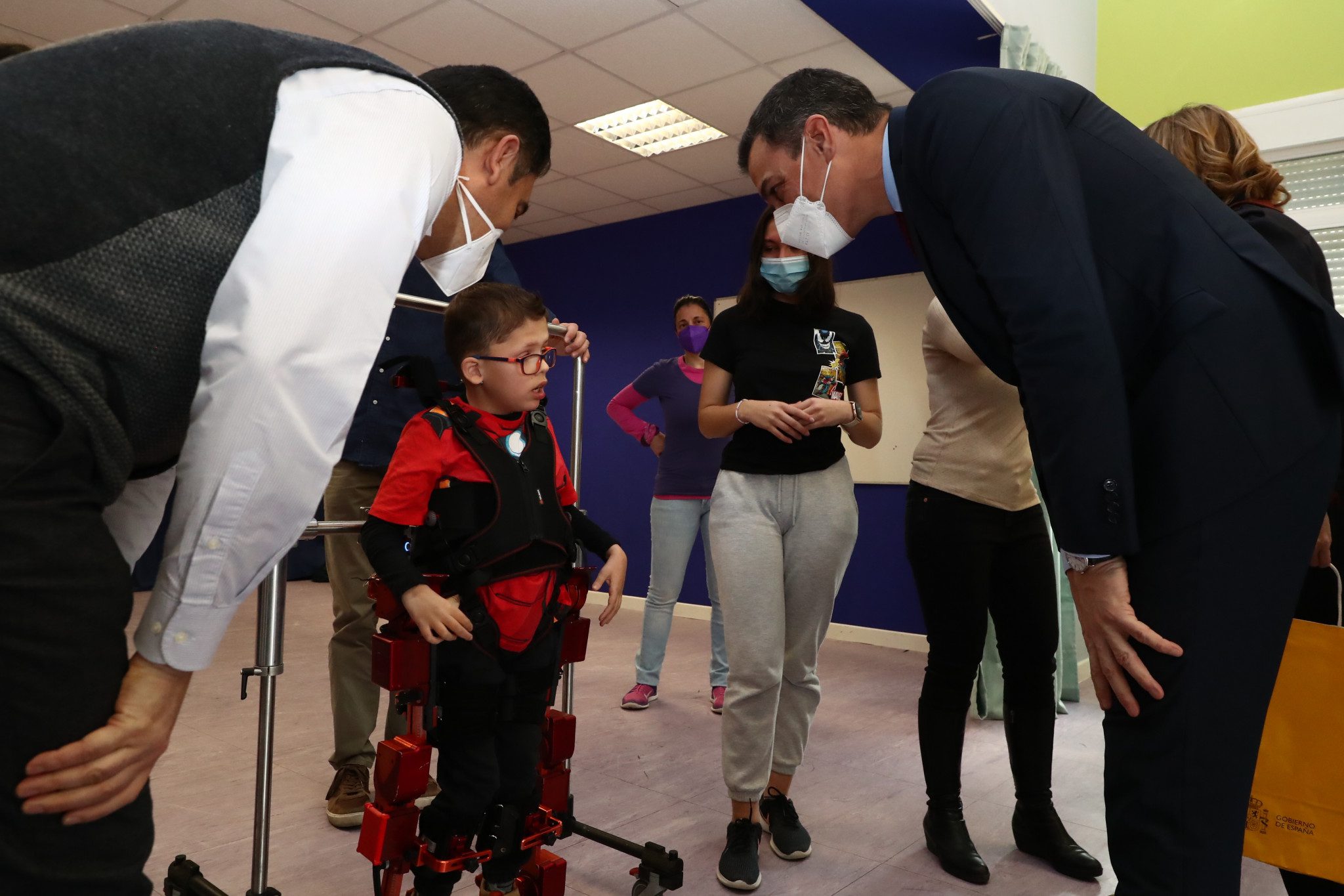 Pedro Sánchez asiste a la presentación del primer exoesqueleto infantil del mundo en un colegio de Torrelodones