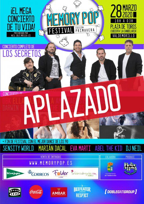 La complicada situación actual frente al coronavirus ha obligado al aplazamiento del festival Memory Pop, previsto para el sábado 28 de marzo en la Cubierta, con un aforo para 4.000 personas y Los Secretos, OBK, Ella Baila Sola o Amistades Peligrosas entre los artistas anunciados.
