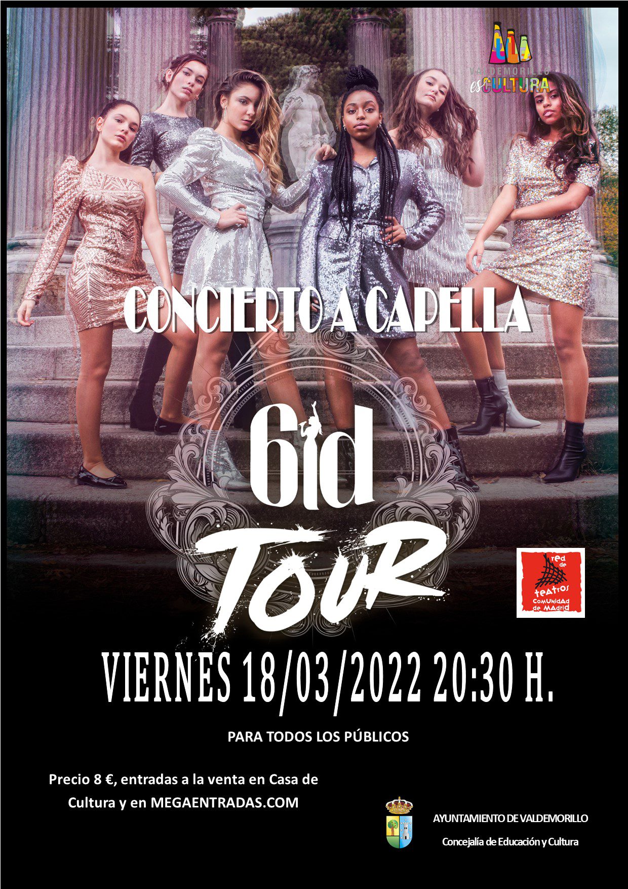 En su periplo por diversos escenarios de la región a lo largo de este primer semestre de 2022, el sexteto que forman Alejandra Pabón, Camino Moreno, Carla Pozos, Rocío Barroso, Paula González y Candela Camacho llega este viernes al Auditorio de la Casa de Cultura Giralt Laporta de Valdemorillo para ofrecer lo mejor de sus voces en el concierto a capella que acercará así esta propuesta incluida en la agenda de la Red de Teatros de la Comunidad de Madrid.