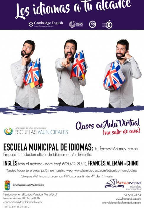 Enseñanza de calidad y segura, cercana y muy completa. La Escuela Municipal de Idiomas de Valdemorillo arranca este curso con su opción de clases en aula virtual, de modo que, sin salir de casa, los alumnos puedan seguir su aprendizaje con comodidad, pero también con las máximas garantías de avanzar hacia su titulación oficial. Y no sólo el inglés, aplicando el método Learn English, destaca en la oferta de esta Escuela, ya que en ella se imparten igualmente francés, alemán y chino.