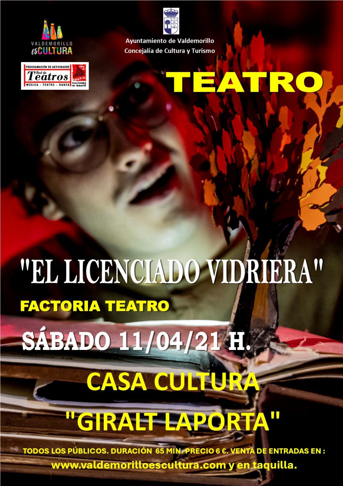 La productora madrileña Factoría Teatro, con el aval que le dan sus más de 30 años de trayectoria profesional, recala ahora en Valdemorillo para hacer partícipe a los espectadores locales del Proyecto Cervantes, “un proyecto vital que no deja de ser un desafío y un empeño al que nos entregamos con la garantía de un autor imprescindible en todos los tiempos”. Interpretada por Chema Sabarga y Pablo Salinero, bajo la dirección de Gonzala Martín Scherman, ‘El licenciado Vidriera’ acercará uno más de los textos que esta compañía transforma en “teatro para todos” a partir de la obra de Cervantes, “con el que sobre las tablas nos hemos convertido en narradores dramáticos que persiguen trasladar al escenario el brillante ingenio narrativo del manco de Lepanto”.