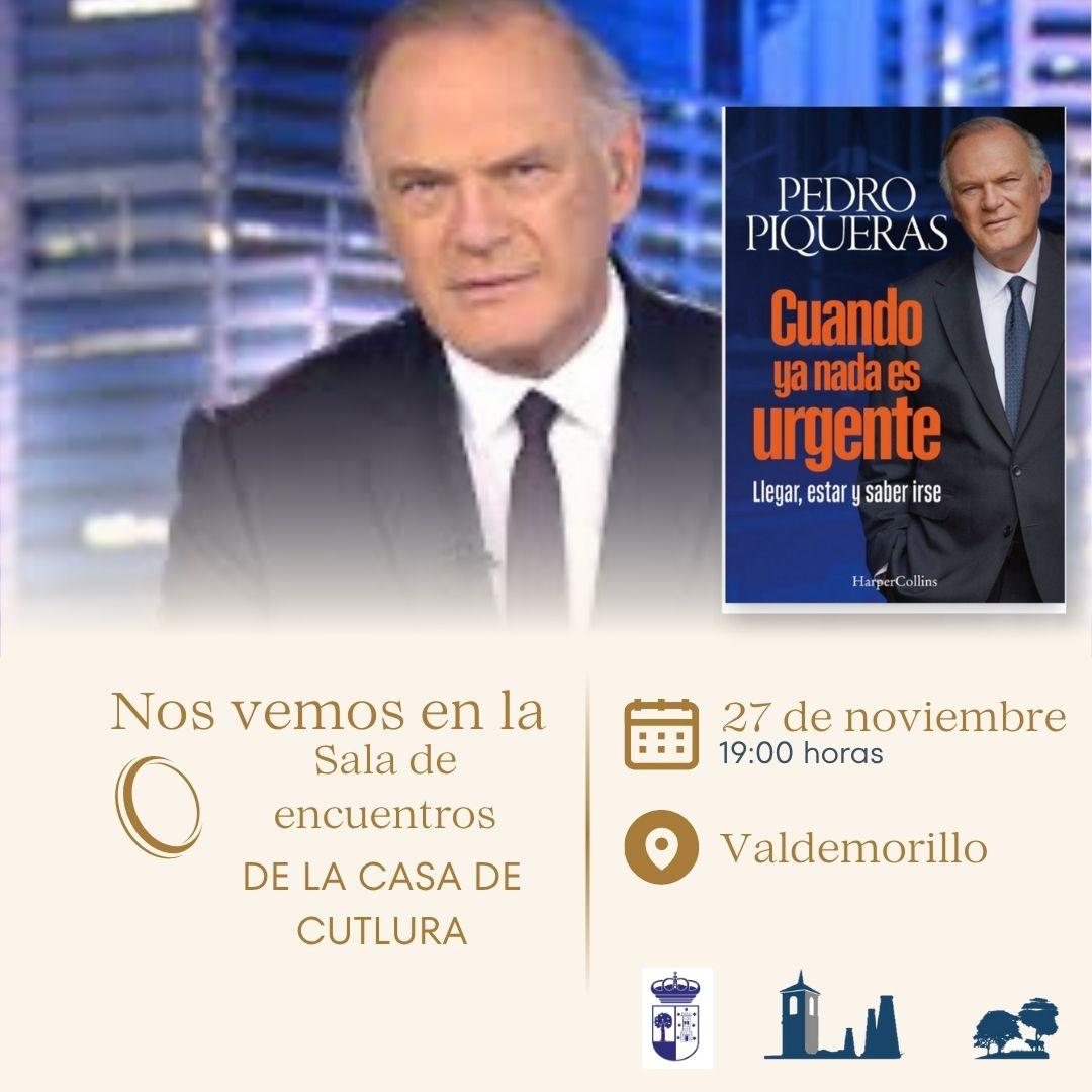 Pedro Piqueras llevará de las páginas a su propia voz el relato en primera persona que da testimonio “honesto y sin filtros” sobre la vida, el periodismo, la familia, la amistad y, de modo muy especial, “la importancia de llegar, estar y saber irse”. Y es que, en esta ocasión, el micrófono aguarda al periodista, uno de los más reconocidos de España, en una Casa de Cultura que, como vecino de Valdemorillo, es también su casa, un espacio abierto al encuentro donde sus vecinos y el público en general podrán seguir el próximo jueves 27 de noviembre la presentación de ‘Cuando ya nada es urgente”.