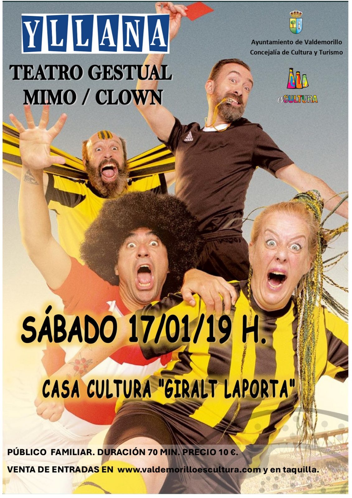 El fútbol se pone bajo los focos de la Giralt Laporta en la función de este sábado. Porque Yllana repite encuentro en Valdemorillo, público siempre dispuesto a aplaudir sus montajes, marcando ahora todo un ‘GOOL’ haciendo del teatro gestual el narrador de este ‘partido’ que pone en juego una sátira en toda regla sobre el universo apasionante y contradictorio que encarna el fútbol, capaz de unir, o dividir, a personas de diferentes orígenes, edades o creencias.